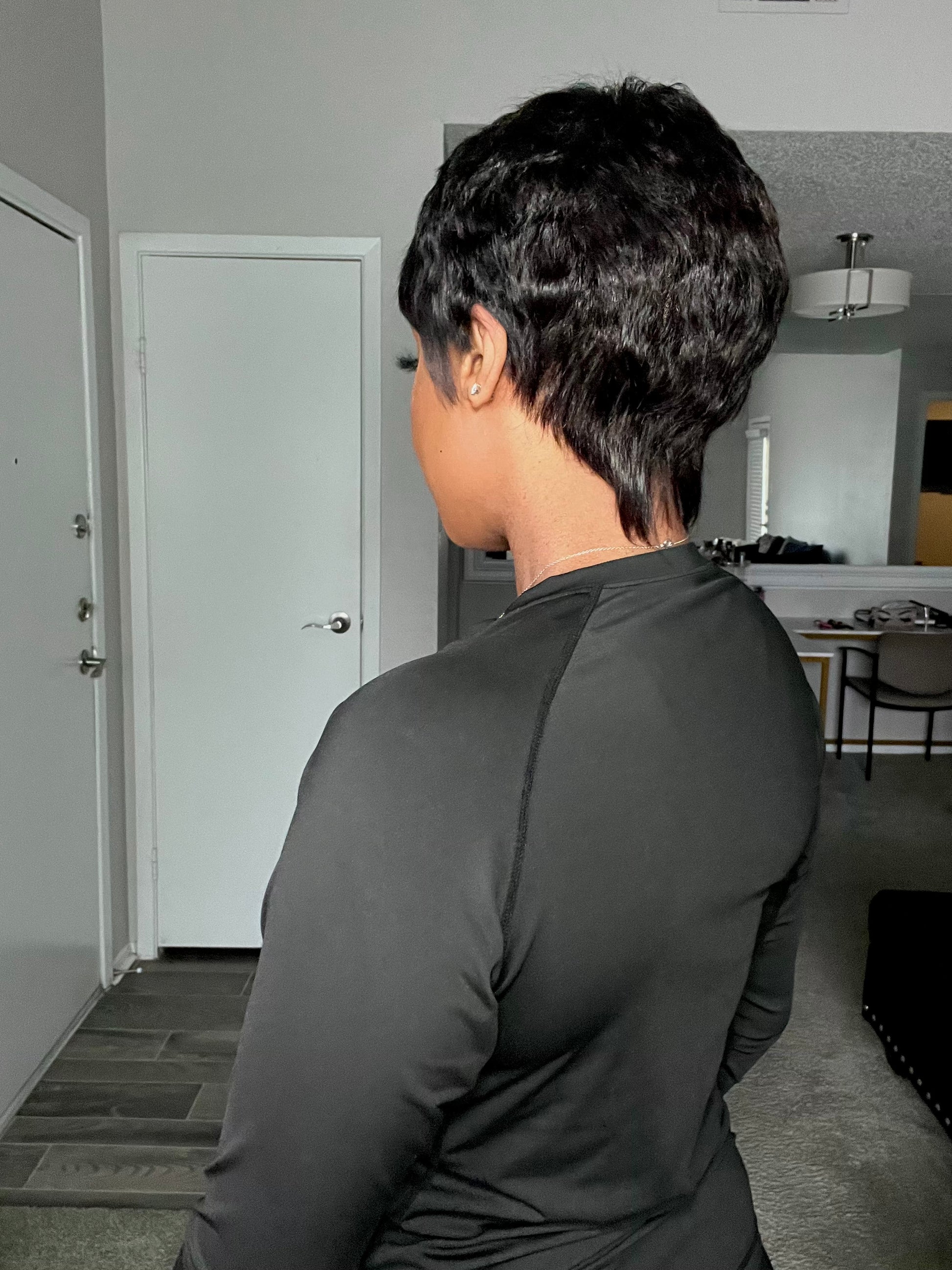 A sleek pixie cut crafted to frame the face with confidence and sophistication.